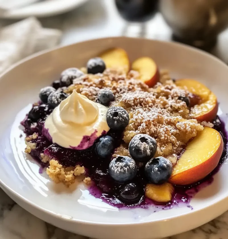 Mit diesen Zutaten wird Ihr Blaubeer-Pfirsich-Streuselkuchen zu einem absoluten Hit, den niemand verpassen möchte!
