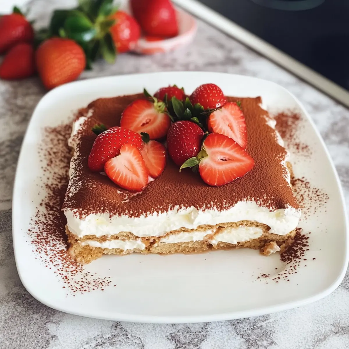 Variationen: Experimentiere mit anderen Früchten, wie Himbeeren oder Blaubeeren, um dein Erdbeer Tiramisu zu ändern. So passt du das Rezept ganz nach deinem Geschmack an.