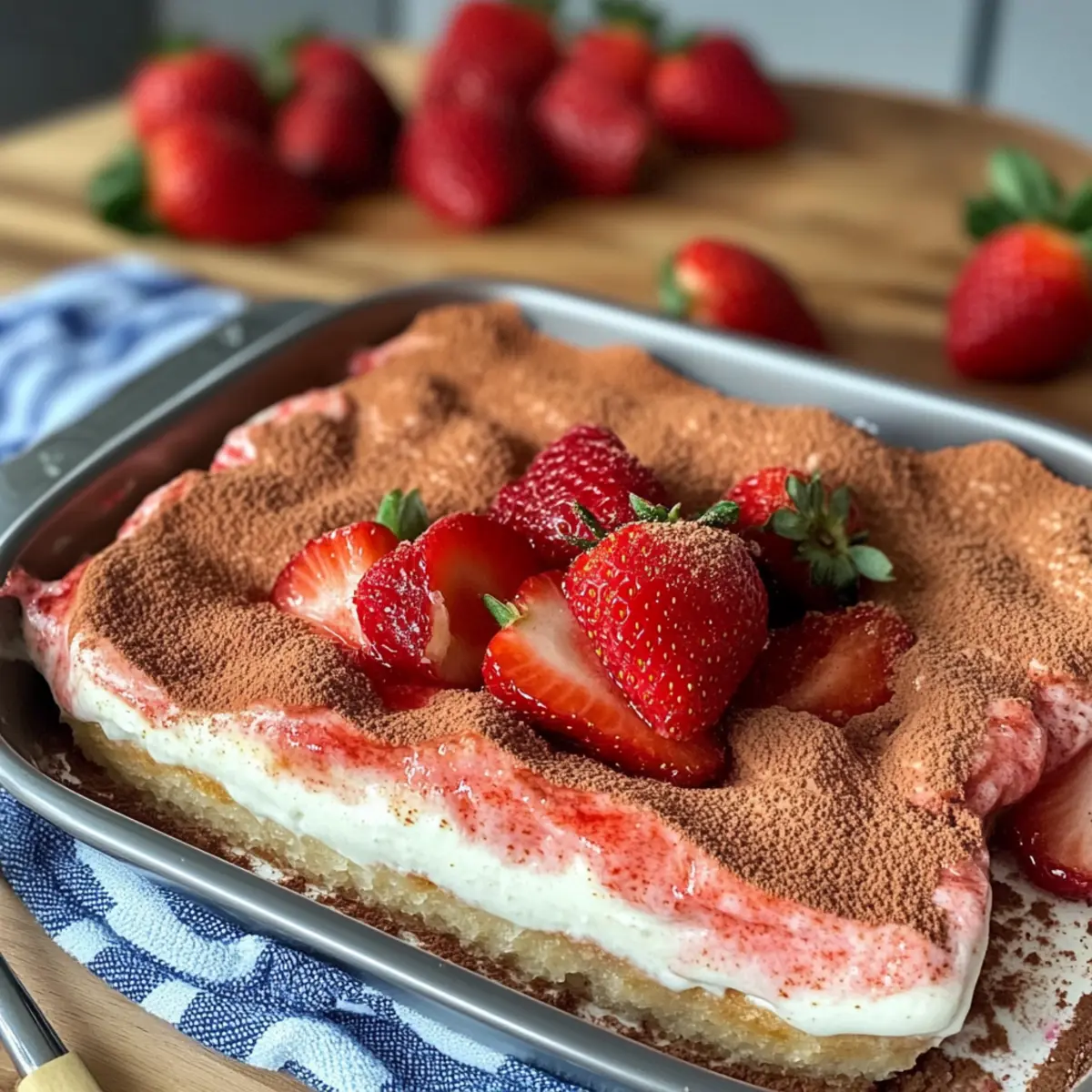 Bewahre das Erdbeer Tiramisu im Kühlschrank auf, wo es bis zu 3 Tage frisch bleibt. Stelle sicher, dass es gut abgedeckt ist, um ein Antrocknen zu vermeiden. Ich empfehle, es in einem luftdichten Behälter aufzubewahren, um die Aromen zu schützen.