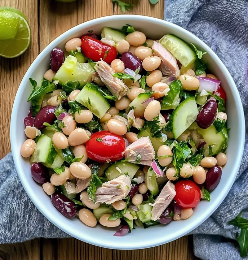 Der frische mediterrane Weiße-Bohnen- und Thunfisch-Salat ist eine gesunde, schnelle und leckere Mahlzeit, die Farbe, Geschmack und Nährwert perfekt kombiniert. Dank einfacher Zutaten, leichter Zubereitung und vielseitiger Anpassungsmöglichkeiten wird er schnell zum Favoriten für warme Tage oder gesunde Lunchboxen.