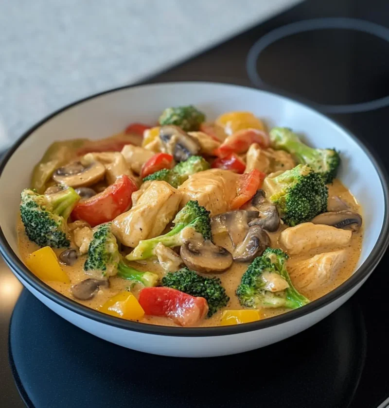 Wenn Sie unter Zeitdruck stehen, ist diese Hähnchenpfanne mit Gemüse perfekt für die Vorbereitung! Sie können das Hähnchen und das Gemüse bis zu 24 Stunden im Voraus schneiden und separat im Kühlschrank aufbewahren, um die Frische zu bewahren. Brokkoli, Paprika und Champignons behalten ihre Knackigkeit, wenn sie in luftdichten Behältern aufbewahrt werden. Am Tag des Kochens benötigen Sie dann nur noch 25-30 Minuten für die Zubereitung. Einfach das vorbereitete Gemüse in die Pfanne geben, das Hähnchen anbraten und die Sahne hinzufügen. So genießen Sie ein köstliches, gesundes Gericht, ohne unnötige Zeit in der Küche zu verbringen!