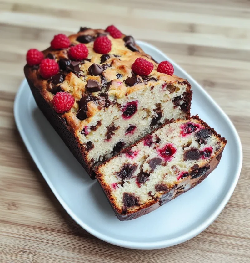 Bananenbrot ist ein Klassiker in vielen Küchen, aber die Kombination aus saftigen Bananen, frischen Himbeeren und dunklen Schokoladenstückchen hebt dieses Rezept auf ein ganz neues Level. Schon beim Öffnen des Ofens steigt der verführerische Duft von geschmolzener Schokolade und reifen Bananen in die Nase – ein Moment, der Vorfreude auf den ersten Bissen weckt.