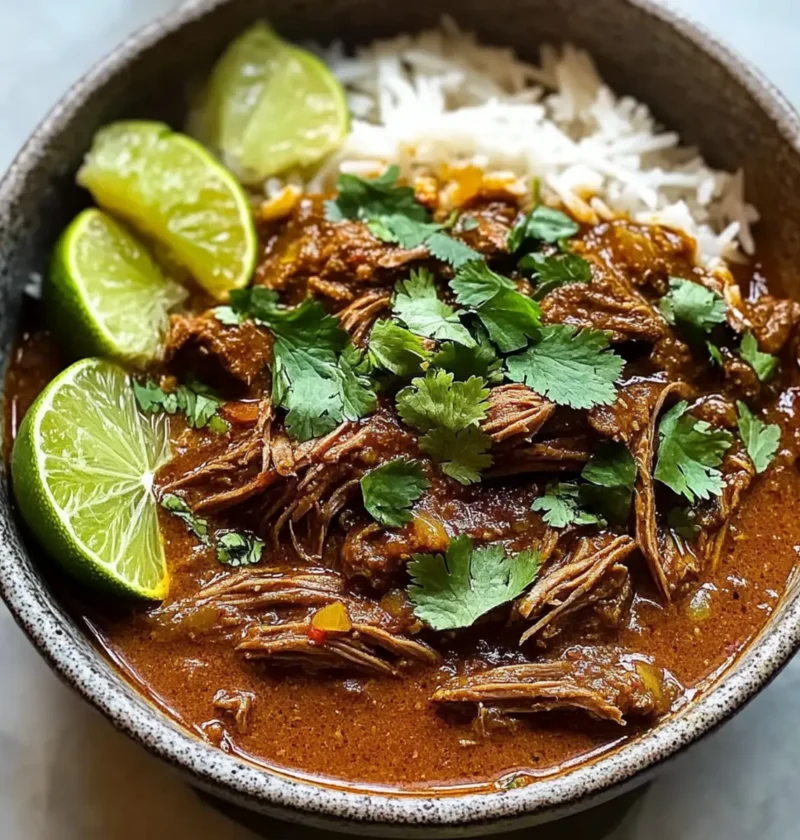 Ein köstliches Kokosnusscurry zerrissenes Rindfleisch Rezept, das zartes Rindfleisch mit cremiger Kokosmilch und aromatischen Gewürzen vereint.