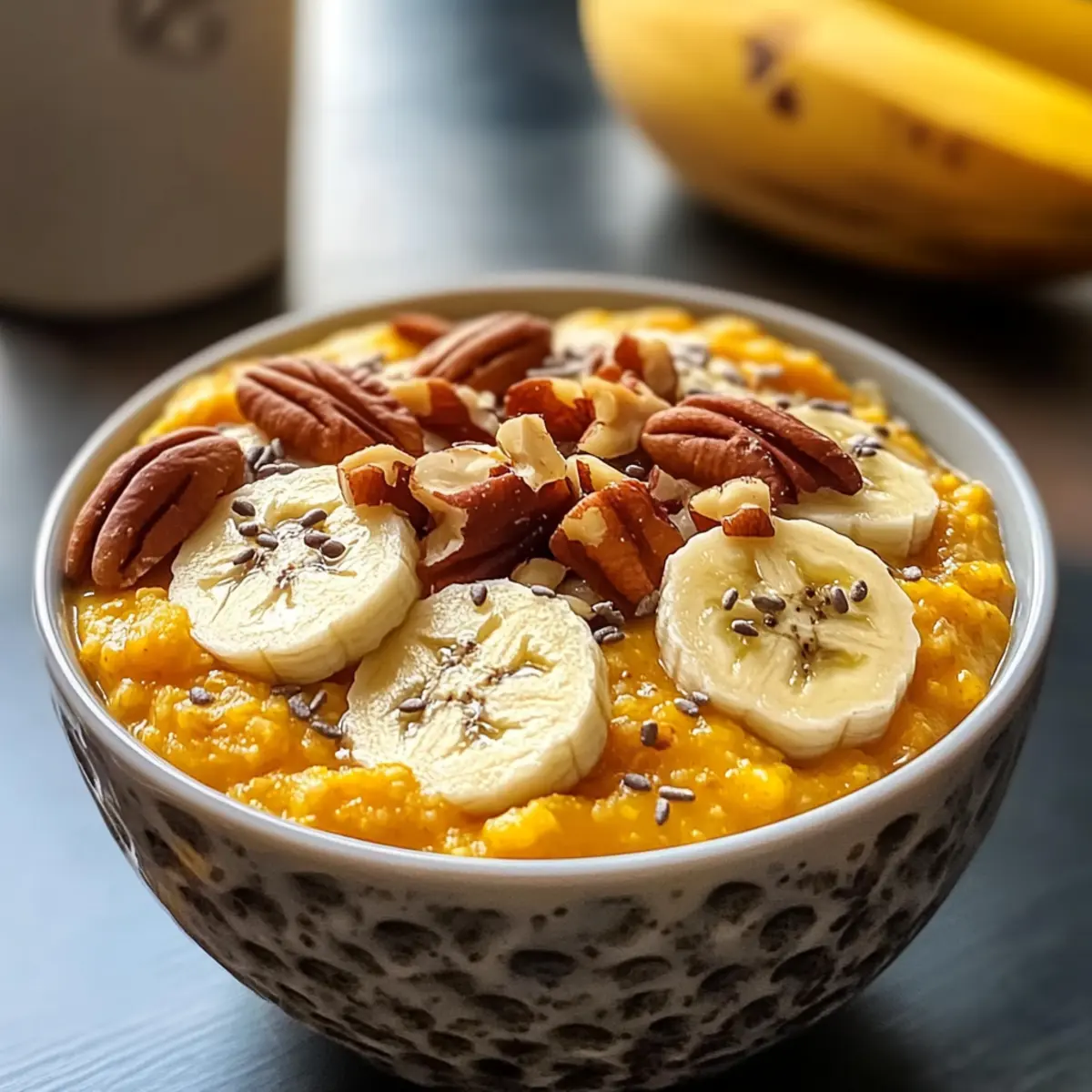 Nährstoffreiche Köstlichkeit: Die Kombination aus Kürbis und Hafer liefert essentielle Vitamine und Ballaststoffe, die dir einen perfekten Start in den Tag ermöglichen.