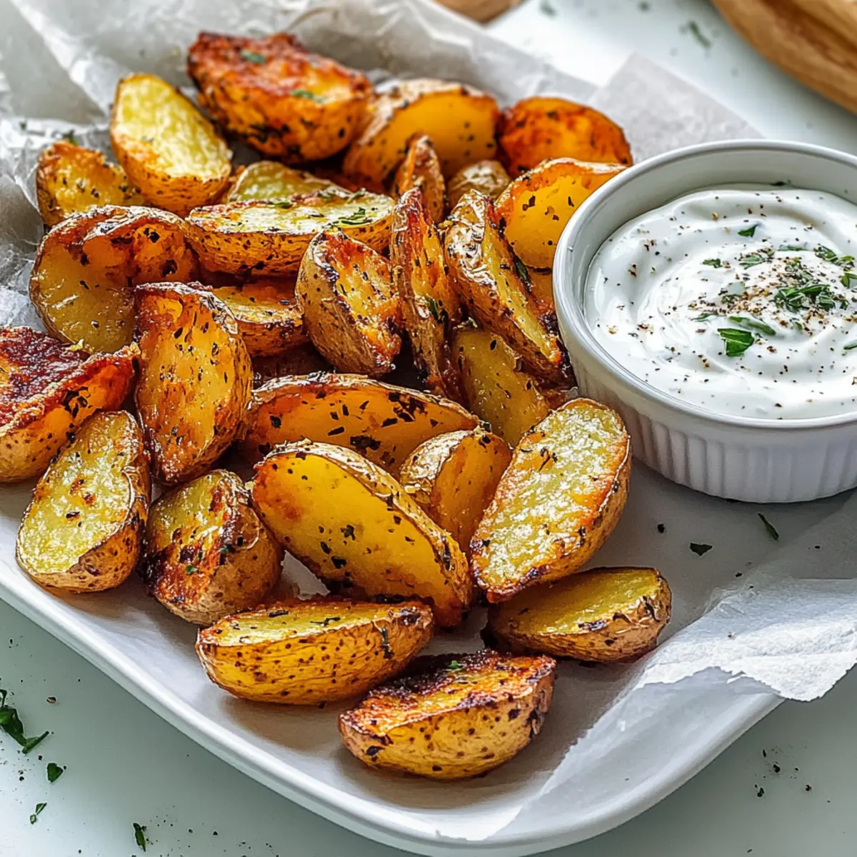 Scharf: Füge eine Prise Cayennepfeffer hinzu, um deinem Gericht einen feurigen Kick zu verleihen. Die Kombination aus scharfen Kartoffeln und dem milden Dip wird deine Geschmacksknospen überraschen!