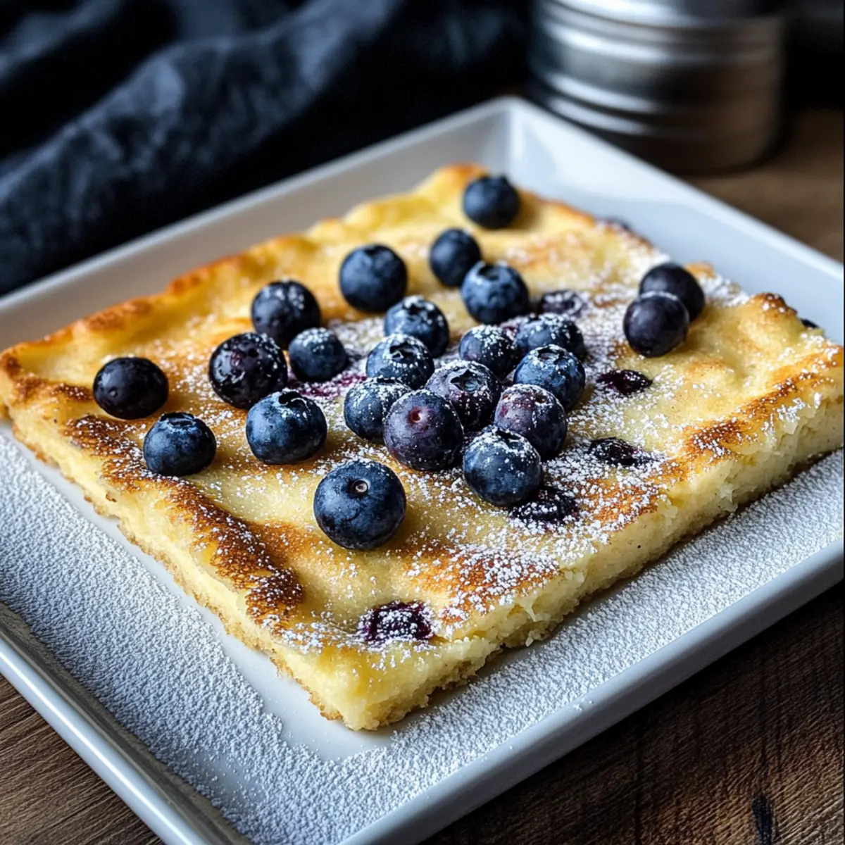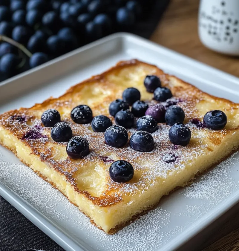 Geschmacksexplosion: Der Blechpfannkuchen kombiniert eine fluffige, puddingartige Textur mit einem karamellisierten, goldbraunen Topping – ein Genuss für die Sinne!