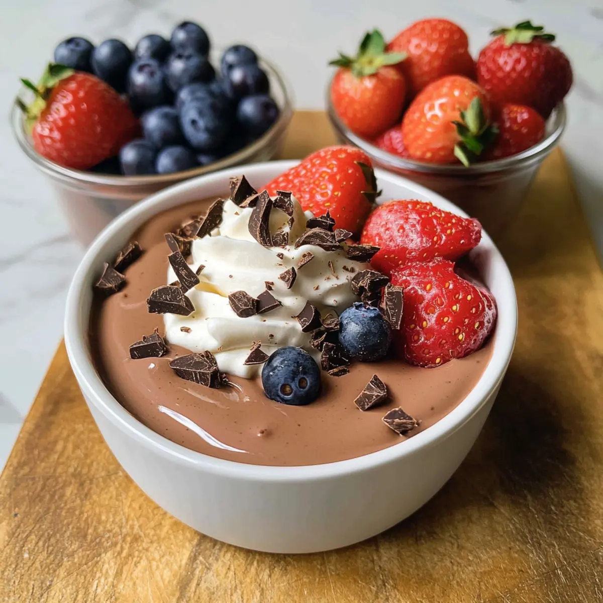 Frische Beeren: Die süßen und saftigen Beeren bringen ein erfrischendes Element hinzu, das den schokoladigen Geschmack des Puddings perfekt ergänzt.