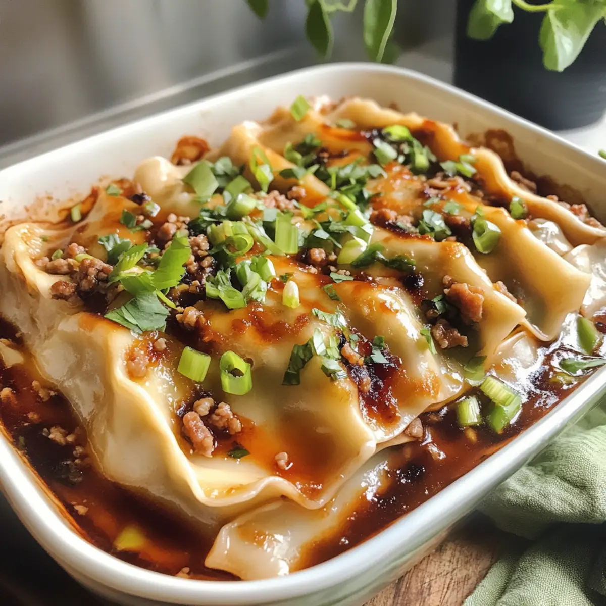 Teigtaschen-Lasagne vereint wohltuende Aromen klassischer Teigtaschen mit der Einfachheit einer geschichteten Lasagne. Perfekt für geschäftige Abende.