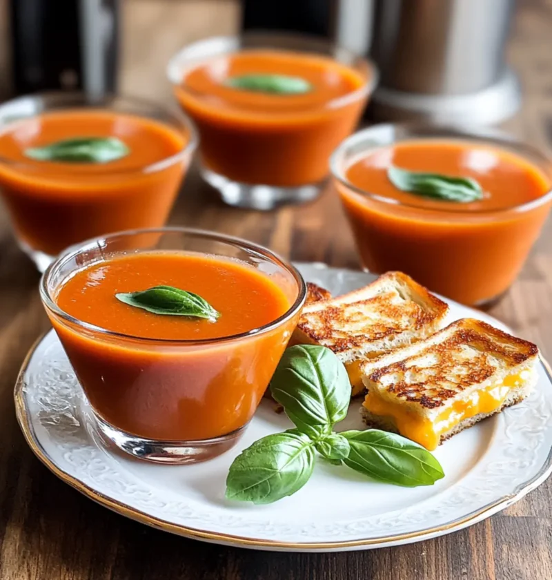 Die köstliche Kombination der Zutaten für die Tomaten-Basilikum-Suppe Shooter mit gegrillten Käsebissen sorgt für ein unvergessliches Geschmackserlebnis!
