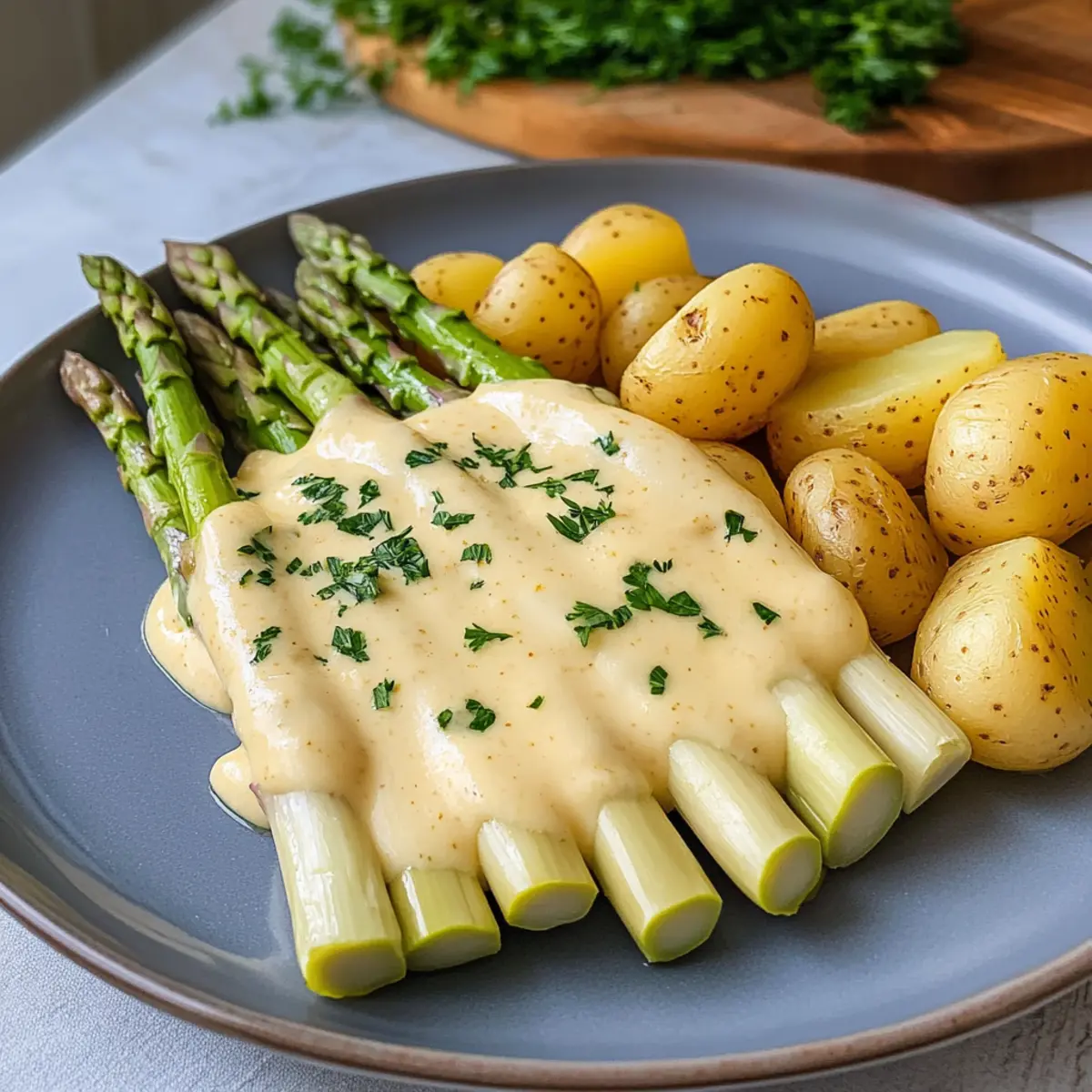 Für Menschen mit Eierallergien kann die Hollandaise eine Herausforderung darstellen, da sie essentielle Zutaten wie Eier benötig. Eine alternative Sauce könnte eine einfache Vinaigrette aus Senf, Honig, Essig und Öl sein, die den Spargel trotzdem köstlich ergänzt. Achte auch darauf, erhöhte Sensibilität auf Meersalz und Butter zu beachten, je nach diätetischen Bedürfnissen.
