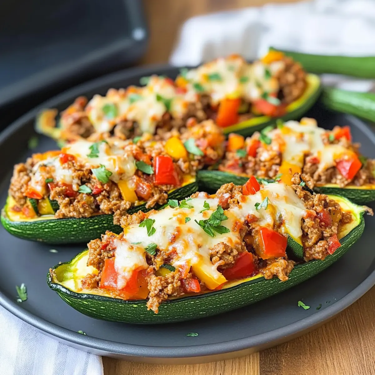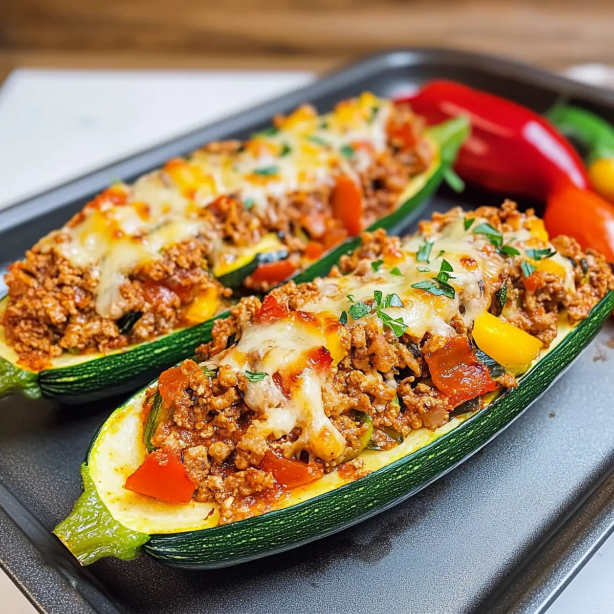 Füllung nicht überladen: Fülle die Zucchinihälften gleichmäßig, aber achte darauf, dass sie nicht überquellen, damit sie beim Backen ihre Form behalten.